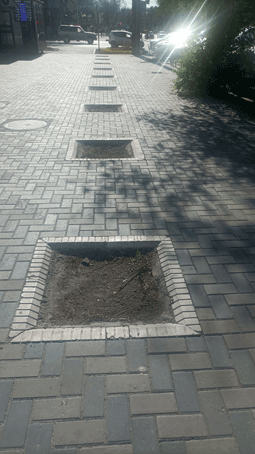 Недавно муниципалитет практически ткнули носом в вид перекрёстка ул. Московской с Абдрахманова. Там, словно в издёвку, аккуратно спилили с десяток деревьев, ранее высаженных буквально по линеечке. Даже когда укладывали тротуарную плитку, для каждого деревца оставили приствольное пространство. Надеялись, что для полива этого будет достаточно. Но земли около деревьев было так мало, что все они засохли. Да и как могло быть иначе, если надеялись только на дождевую воду?