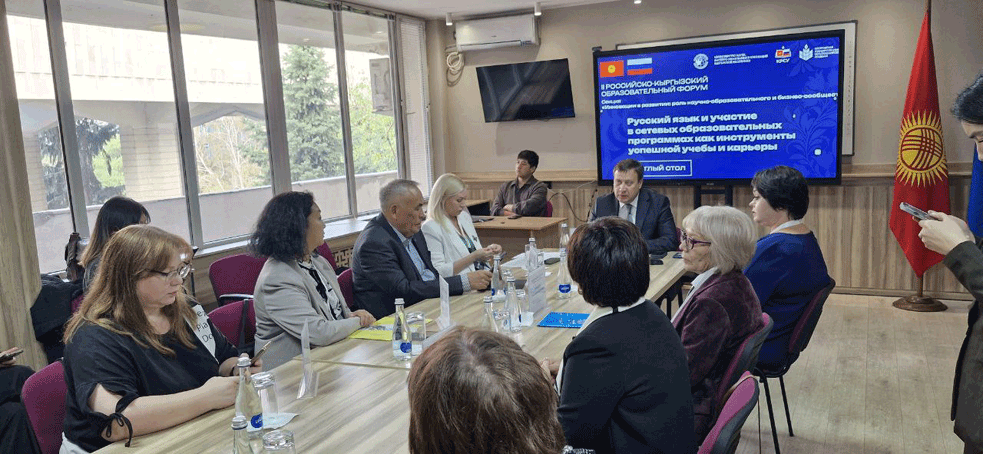 В ходе форума Павел Шевцов, заместитель руководителя Россотрудничества, выступил модератором круглого стола «Русский язык и участие в сетевых образовательных программах как инструменты успешной учебы и карьеры». На сессии обсудили роль русского языка как официального языка Кыргызской Республики в укреплении двусторонних связей, его вклад в развитие инженерно-технических и гуманитарных наук и преимущества, которые дает кыргызским специалистам владение русским языком на пространстве Большой Евразии.
