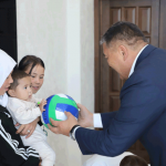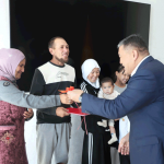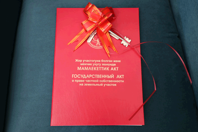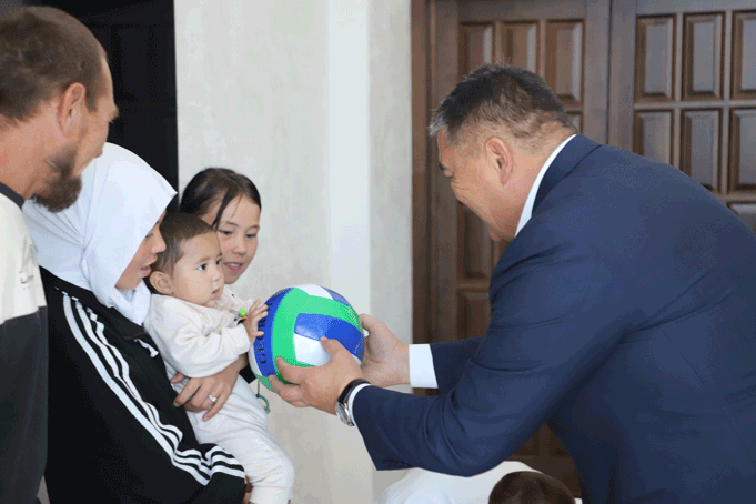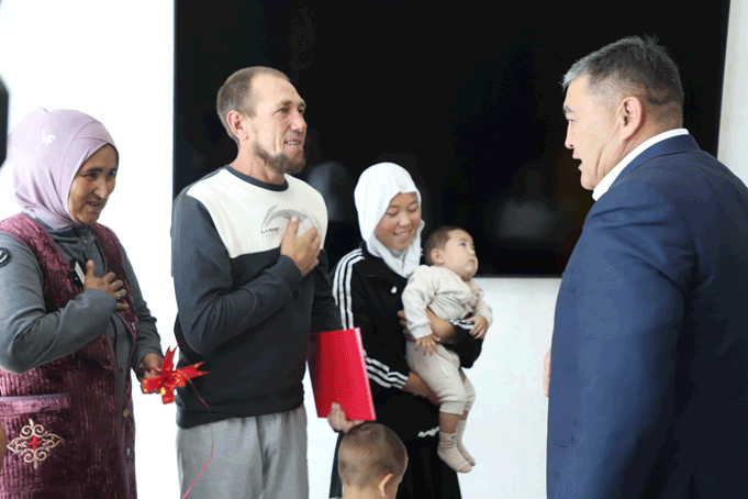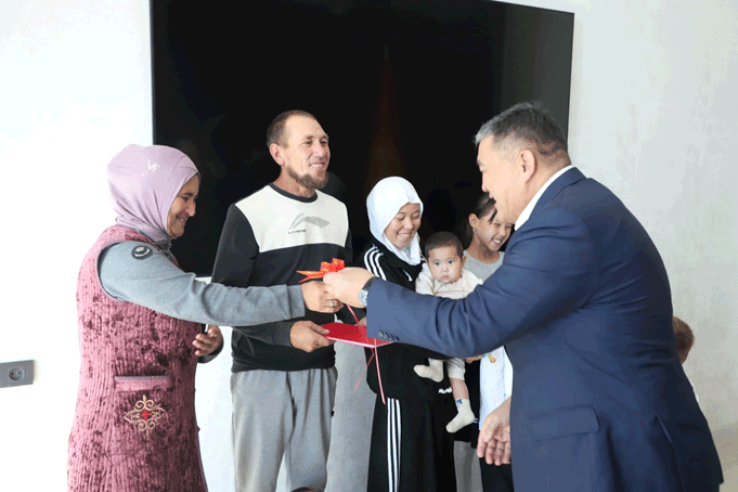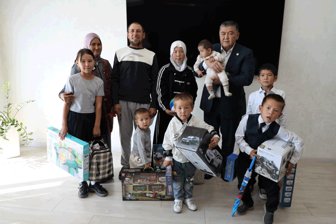 Заместитель председателя кабинета министров республики – председатель Государственного комитета национальной безопасности генерал-полковник К. Ташиев подарил 3-комнатный дом и вручил ключи семье с десятью детьми, обратившейся за помощью.
