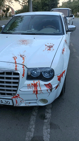 Художества, встречаемые на улицах столицы, иногда могут не только удивлять, но и шокировать. Увиденная на парковке машина с весьма своеобразным внешним тюнингом поначалу заставила вздрогнуть. Да и как иначе реагировать на окровавленный капот?