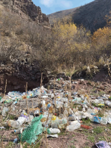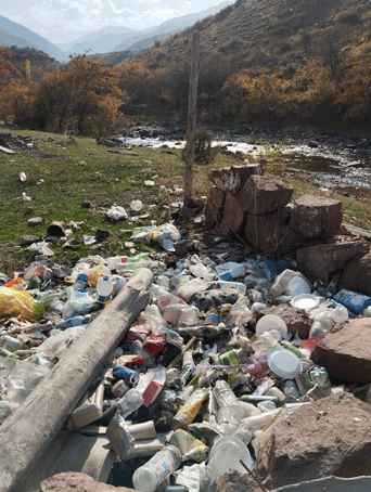 Особого внимания заслуживает «деликатная» тема — туалеты. Они в зоне отдыха имеются — добротные, хорошо проветриваемые, типа дворовый сортир. Только вот, судя по многочисленным следам по всему берегу реки, далеко не все отдыхающие горят желанием стоять в очереди в единственное отхожее место, предпочитая использовать в качестве туалета окружающие заросли. Во время паводков все эти следы человеческой жизнедеятельности смываются водой в реку, превращая ее кристально чистые воды в подобие канализационного стока. Мусор — бутылки, пластик, одноразовая посуда — не вывозится, а собирается в огромные кучи, которые, чтобы «не бросались в глаза», сгребают в специально выкопанные ямы. Все это экологическое безобразие зимует в нескольких десятках, а иногда и в нескольких метрах от живительной воды реки Кара-Балта.