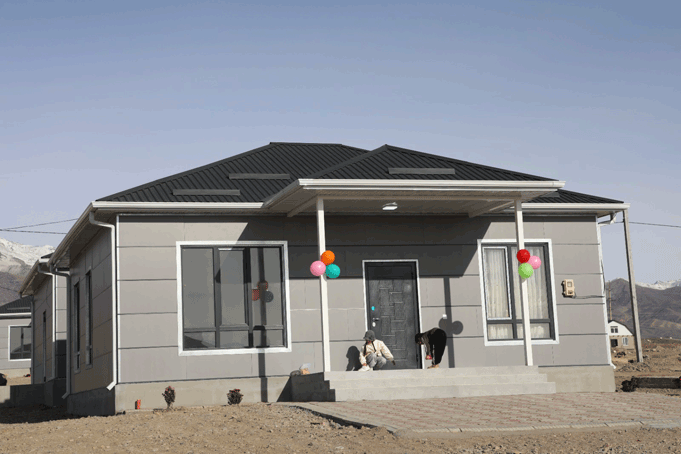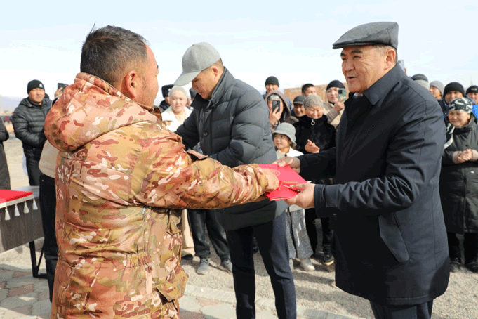 Заместитель председателя кабинета министров – председатель ГКНБ генерал-полковник К.Ташиев в ходе рабочей поездки в Иссык-Кульскую область вручил ключи и документы от новых домов, построенных для шести семей.