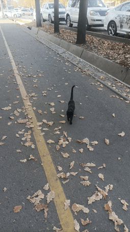 Проходя по проспекту Чуй, обратил внимание на черного котика, отважно разгуливавшего по велодорожке. При этом с неё он никуда не уходил. Шёл то в одну сторону, то в другую. Со стороны казалось, что кот всем своим видом и повадками пытался напугать велосипедистов и самокатчиков, лихо гонявших по тротуару.