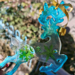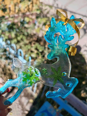 Случайная прогулка по интернет-сайтам обернулась судьбоносной находкой. Поделки из эпоксидной смолы поразили воображение: внутри прозрачной глубины застывали цветы, блестки, ракушки, словно пойманные мгновения природы. Формы и материалы Елена Клинова заказала онлайн, а дальше началось то, что невозможно купить, — работа рук, терпение и фантазия. В специальные формочки заливалась смесь, основу которой составляет эпоксидная смола, в быту — просто эпоксидка. Шло время, и композитная смесь превращалась в твердые, забавные, красивые вещи: брелки, елочные игрушки, сувениры.