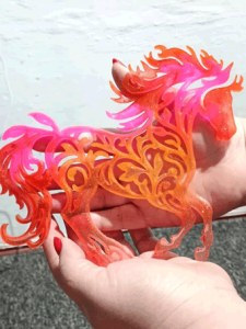 Первые изделия были далеки от идеала — грубоватые, неуклюжие, но в них уже жила творческая искорка. Сначала они уходили на подарки друзьям и родственникам, потом появился спрос. Потихоньку Елена начала продавать сувениры желающим: олени по 120 сомов, снежинки и лошадки — по 140. В канун Нового года большим спросом пользуются елочные игрушки в виде огненных лошадок. С опытом пришло понимание формы, красоты и эстетики. В качестве поделок появились знаки Зодиака, необычные сахарницы, новогодние игрушки. А затем появилось желание усложнить задачу.