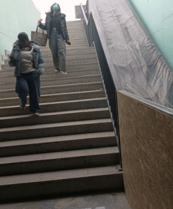 И вот народ пошёл по переходам. Это просто песня. Сразу показалось, что ты не через дорогу быстро переходишь, а долго спускаешься в глубокое метро. Гражданам приходится преодолевать по 35-40 ступенек! Если молодые по ним скачут довольно легко, то для пенсионеров и не очень здоровых людей – это просто тест на выживаемость. Причём проектировщики не стали заморачиваться обустройством спусков ни для детских колясок, ни для людей с ограниченными возможностями здоровья.