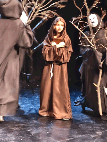 Главный персонаж — Шут — был абсолютной звездой представления. Никто даже не заметил, что под его маской была шестнадцатилетняя девушка Дарья Патратий. Она занимается в театральной студии в районной детской школе искусств почти шесть лет, за это время дважды принимала участие в Дельфийских играх в актерской номинации. И оба раза занимала вторые места. «Театр — это моя жизнь», — говорит она просто и без пафоса.
