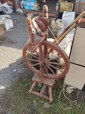 Еще один предмет, вызывающий живой интерес, — самопрялка. Эти деревянные механизмы возрастом от 50 до 100 лет иногда появляются на барахолках и продаются за 1500-2000 сомов. Самопрялка — прялка с колесом, изобретенная в Индии и распространившаяся по миру. В России они появились в XVIII веке, а в Кыргызстане их изготавливали вплоть до 80-х годов прошлого века. Заменив ручное веретено, самопрялка позволяла одновременно скручивать и наматывать нить, облегчая труд мастериц и повышая качество пряжи. В начале ХХ века она была символом женского труда, ею дорожили, даже не одалживали соседям, а старую могли подарить невесте на свадьбу. Сегодня дизайнеры умело вписывают самопрялки в интерьер, превращая их в арт-объекты — подставки под цветы или журнальные столики.