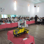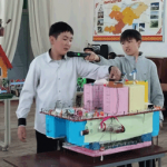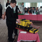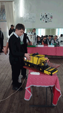 Так, ученик 7 класса карабалтинской школы №10 Данил Овсянников представил движущийся макет свеклоуборочного комбайна, полностью сделанный из картона. На вопрос жюри о возможности применения такой техники в Кыргызстане, школьник уверенно ответил, что комбайн подойдет крупным хозяйствам, но для маленьких фермерских хозяйств может оказаться нерентабельным.