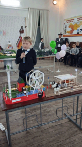 Учащийся школы №2 представил несколько моделей автомобилей-помощников для людей. Третьеклассник школы №8 показал экологический проект получения электроэнергии от ветра под названием «Ветросвет».