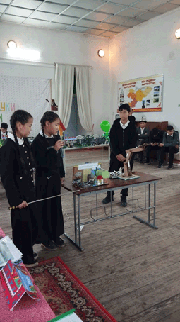 — Сегодня мы подводим итоги Недели науки и техники, которая прошла в школах района. Я желаю вам удачи и надеюсь, что сегодня вы покажете, как сумели применить свои знания, творчество и инициативу. Победители конкурса, занявшие первые места, будут представлять Жайылский район на областном этапе.