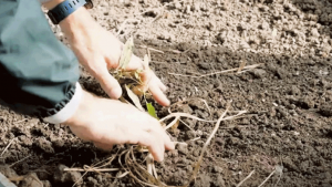 1. Ком земли сжимают в ладони. Если при раскрытии руки он рассыпается, почва готова, если остается слипшимся – необходимо подождать.