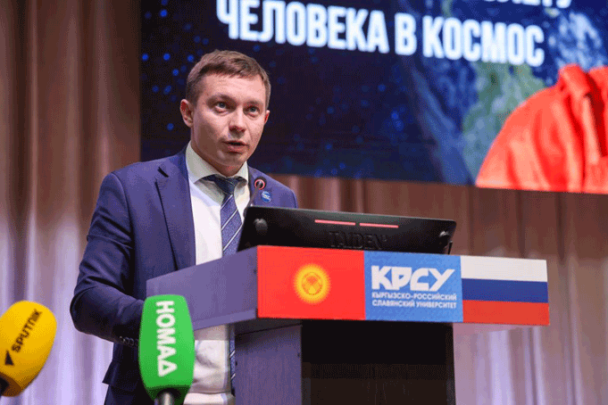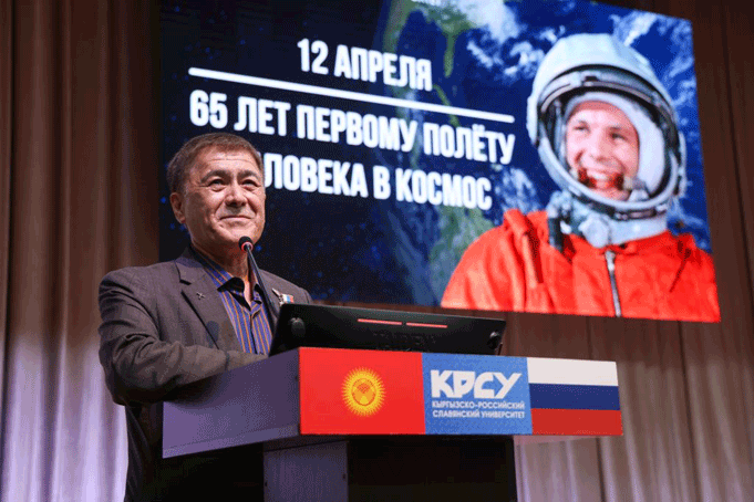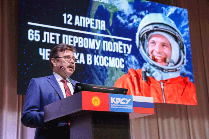 Кыргызско-Российский Славянский университет стал площадкой торжественных мероприятий, посвящённых 65-летию первого полёта человека в космос. Почётным гостем мероприятия стал Герой России и Кыргызстана, лётчик-космонавт Салижан Шарипов.